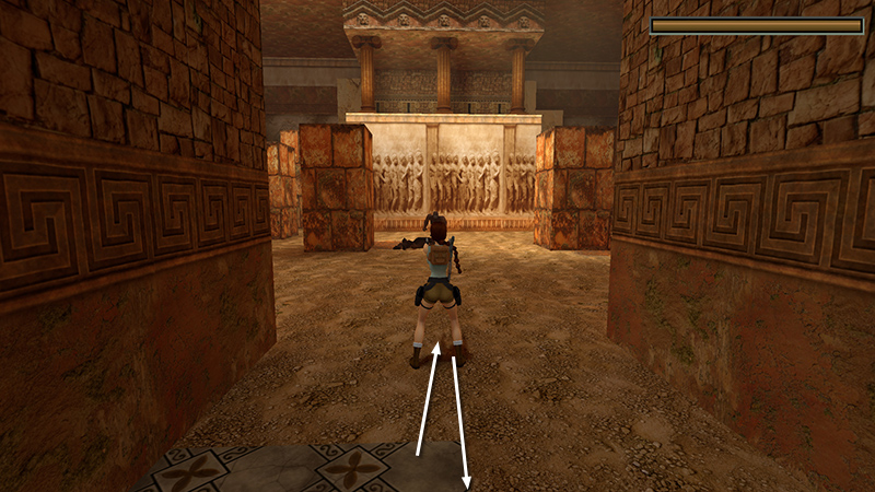 NOTE: Visuals help a lot when learning the corner bug. In addition to the screenshots, check out my basic corner bug video tutorial, classic Midas medi pack video and/or remastered "You Corner Bug" video. And if you like the corner bug, you'll LOVE its siblings, the crawling and swimming corner bugs, detailed in the the Classic Tomb Raider Useful Bugs section.