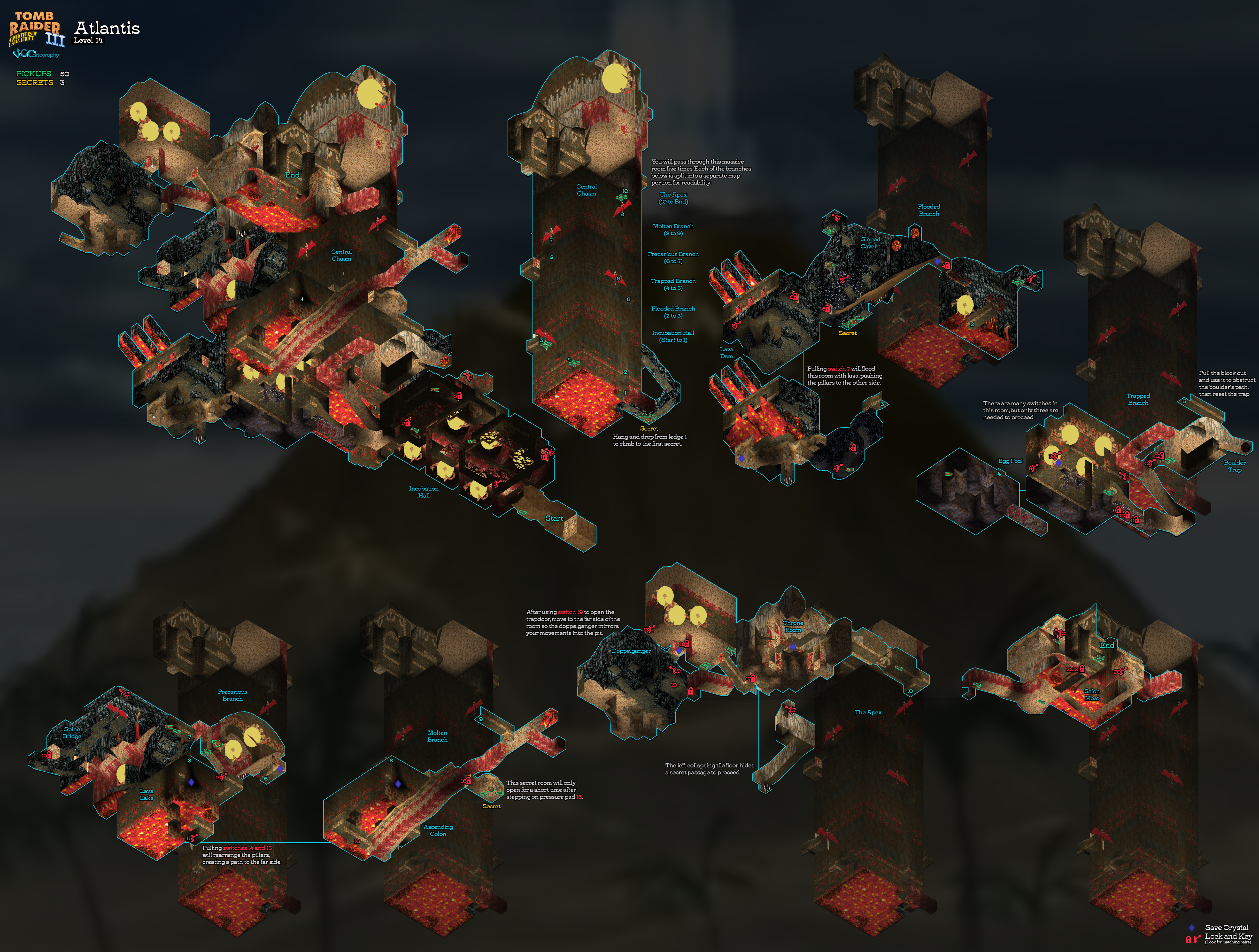 Tomb Raider I-III Remastered updates are in progress. For levels that have not yet been updated, I will continue to link to the ORIGINAL WALKTHROUGHS, which cover all the basics. Please check the introductory notes at the start of the first level for info on my process, modern vs. classic tank controls, etc. This guide covers most but not all possible achievements/trophies. Follow this link for the archived classic Atlantis walkthrough.