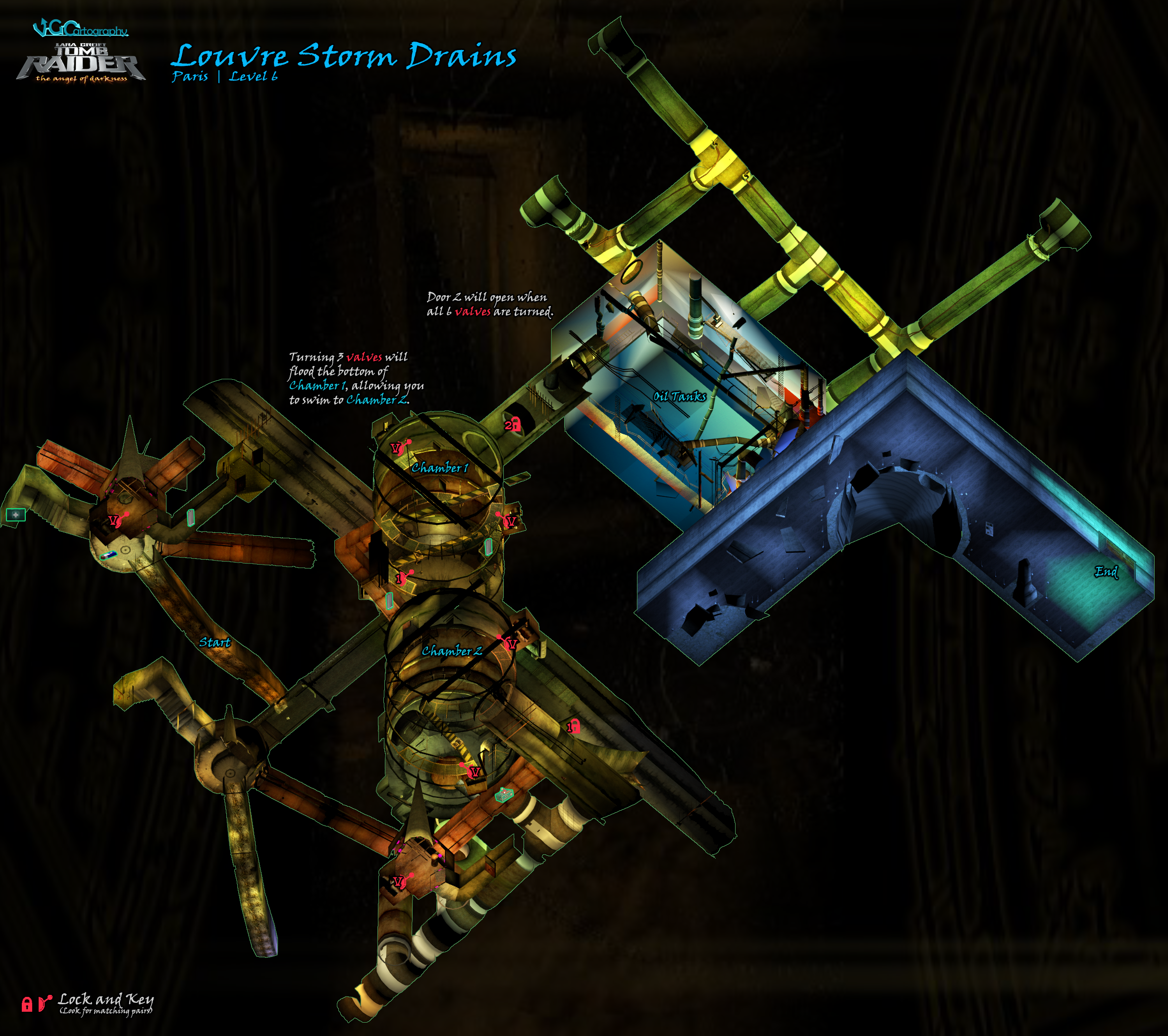 *NOTE ON LEVEL MAPS: VGCartography's Angel of Darkness maps follow a slightly different level-numbering convention than I do. You'll notice most of the Parisian Ghetto-adjacent areas on the same large map. Later, the elemental levels off the Hall of Seasons are included on the same map as the hub level. Visit VGCartography on DeviantArt and follow on Twitter/X and YouTube for more fantastic game maps.