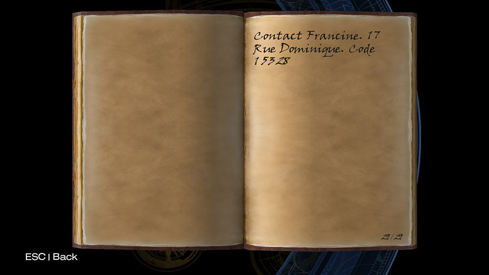11 Lux Veritatis - 'Light of Truth'. A secret 12th century Order of warrior monks who hid the Obscura Paintings in the 1400's. [includes image] Margot Carvier's Apartment screenshot