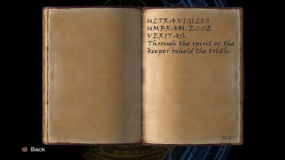 36 ULTRA VIGILIS UMBRAM, ECCE VERITAS. Through the spirit of the keeper behold the truth. Hall of Seasons screenshot