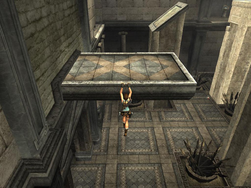 Return up the stairs to the lever and pull it once more to raise the pillars. This time you're headed for the alcove in the far left corner of the room.