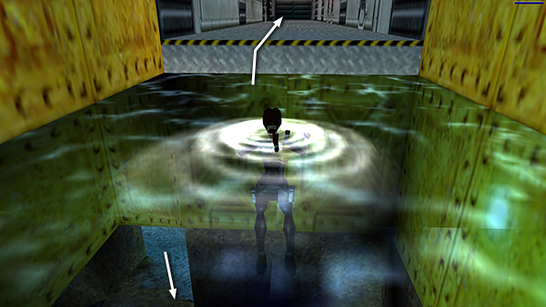 If necessary, swim back up through the white funnel to get air at the trapdoor opening, but remember that you can't climb out of the water here.